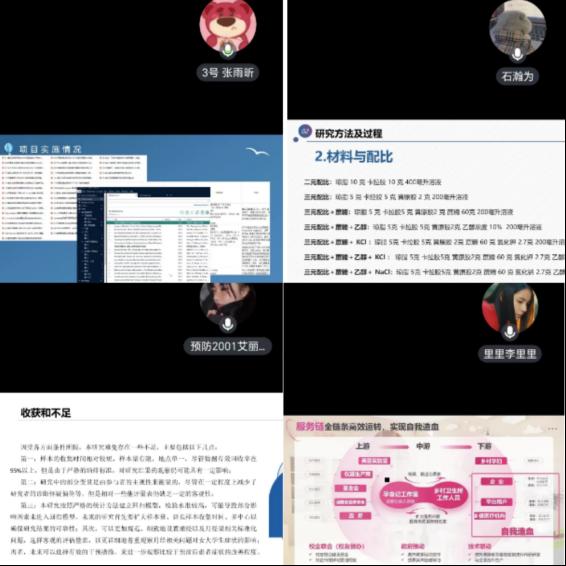 本次我院共有64个项目团队开展结题答辩、成果展示,10分钟成果展示环节每位答辩者就项目选题、方案实施、研究成果、创新点、存在问题及收获体会等方面向大家做了详细的介绍,而后的提问环节,评委们、同学们不时就某一问题提出自己的疑问,并与报告团队积极探讨。