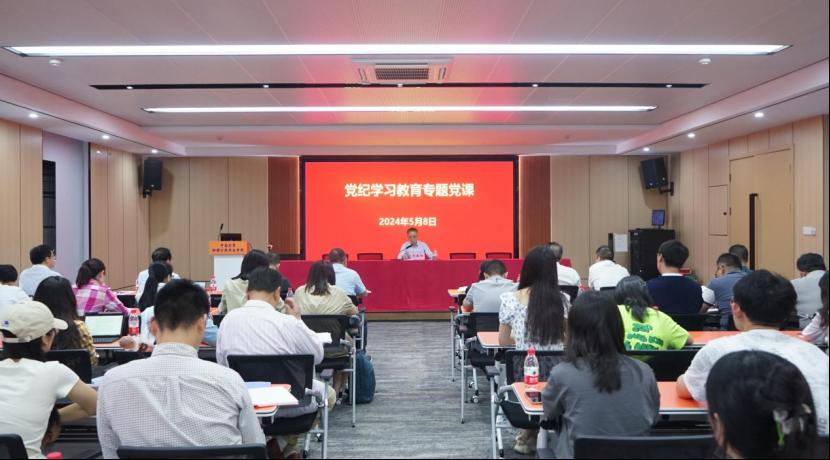 2024年5月8日下午,yl6809永利党委副书记蒋建湘在yl6809永利官网集团六楼学术报告厅为学院师生讲授党纪学习教育专题党课,学院领导班子成员、党支部正副书记、各系室(中心)正副主任和学生党员代表参加听课,讲座由学院党委书记雷先阳主持。