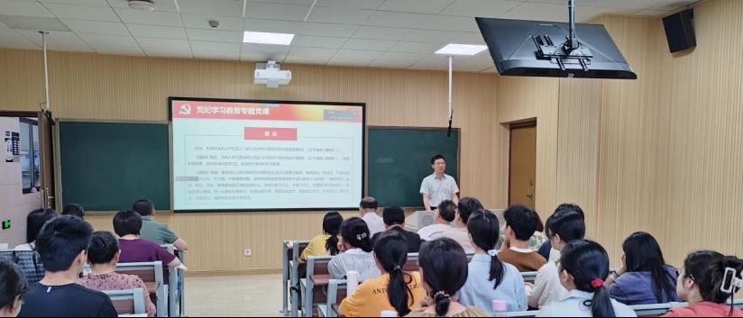 2024年5月26日上午,为深入学习贯彻习近平新时代中国特色社会主义思想,推动党纪学习教育深入开展,yl6809永利官网集团党委书记雷先阳和党委副书记王超为全院党员讲授了党纪学习教育专题党课。校党委组织部副部长张志宏列席指导,我院300余名师生党员在1个主会场和3个分会场及线上集中参加学习。