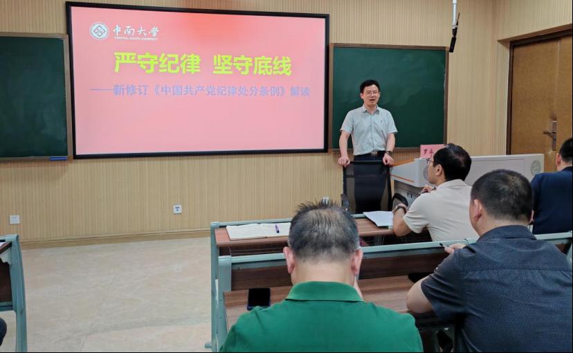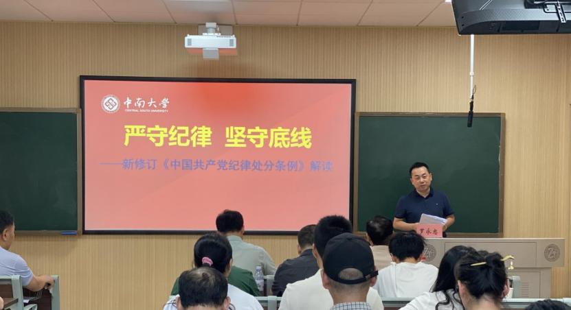 罗永忠从修订《中国共产党纪律处分条例》的重要意义、主要内容和贯彻执行三个维度进行了深入浅出的讲解。他结合近年来发生的违法违纪典型案例,用生动的语言、丰富的内容,警示大家要时刻保持清醒的头脑,坚守纪律底线。他强调了抓好《中国共产党纪律处分条例》贯彻执行的重要性,并指出要通过持续的党纪学习教育,提升全体职工的纪律意识和规矩意识,学院领导班子和全体教职工要自觉遵守廉政“红绿灯”,从紧从严从实恪守纪律,营造风清气正的yl6809永利官网集团发展环境。