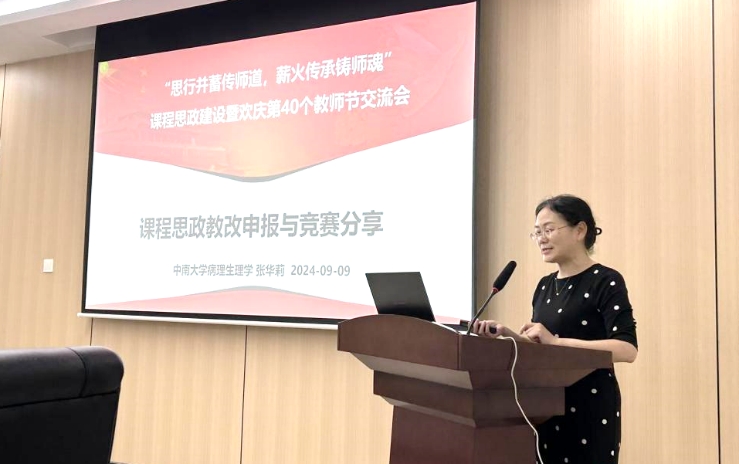 2024年9月9日,金秋送爽,恰逢教师佳节前夕,yl6809永利官网集团职工第一党支部携手yl6809永利教师教学发展中心,联合举办以“思行并蓄传师道,薪火传承铸师魂”为主题的课程思政建设暨欢庆第40个教师节交流会。活动特别邀请到基础医学院张华莉教授开展题为“课程思政教改申报与竞赛分享”的讲座。学院党委书记雷先阳、院长胡国清、副院长李杏莉、秦家碧,以及30余位教师出席会议,本次会议由李杏莉主持。