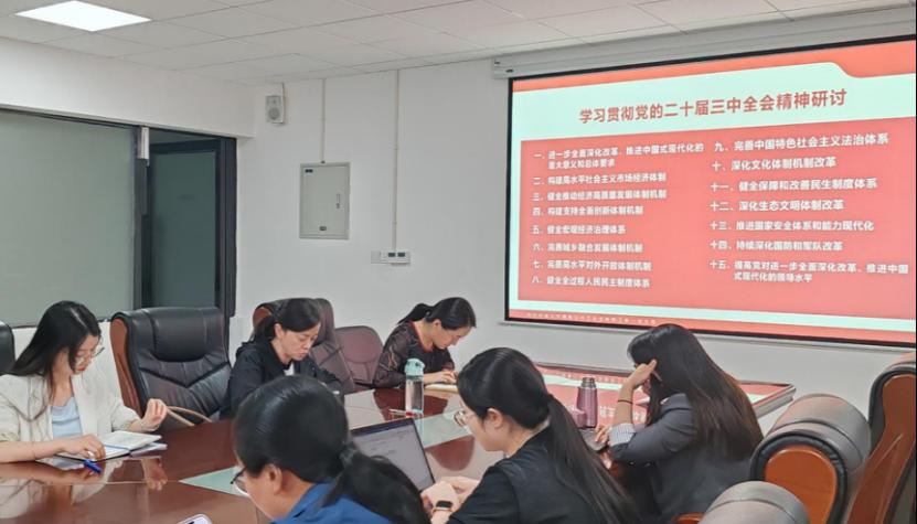 宁佩珊首先介绍了研讨会的背景、师生党员基本培训第三课的基本情况、以及党的二十届三中全会的重要性和主要精神,并组织研讨环节。与会教师纷纷结合自身工作实际展开了热烈讨论,他们表示要深刻领会和贯彻党的二十届三中全会精神,明确高等教育综合改革的着力点,提升高等教育治理现代化水平。在教育改革方面,积极探索新的教学模式,注重培养学生的综合素质和社会责任感。在科研方面,聚焦国家重大需求,加强协同创新研究,推动科研成果的转化运用。