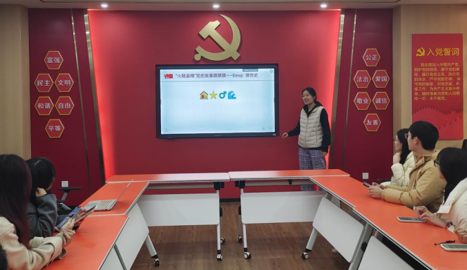 知识竞答活动精心设计为二个阶段:初始阶段为“火眼金睛”党史故事猜猜猜环节,随后进入党史知识竞赛环节。在幻灯片流转的璀璨光影中,主持人巧妙地展示了一系列emoji表情符号,各位竞争者以敏锐的洞察力和快捷的反应速度抢答,力求准确无误地揭示出每一个emoji背后所蕴含的丰富历史事件。踊跃的声音回荡在活动室中,党史学习和回顾也变得更具创意和趣味性。