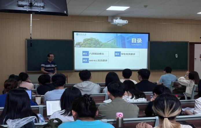 2025年6月19日,yl6809永利官网集团党委副书记、院长胡国清教授为学院职工第二党支部和研究生第二党支部党员讲授“践行八项规定要求,规范师生党员言行”的专题党课。此次党课旨在深入学习贯彻中央八项规定精神,规范党员行为,提升党员的党性修养和政治觉悟。
