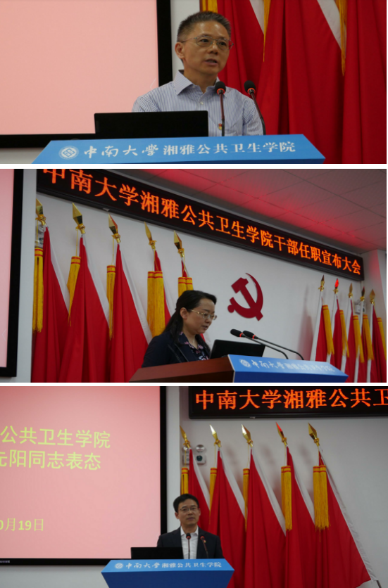 首先,党委组织部正处级组织员赵晓霞同志宣读干部任职文件:雷先阳同志任yl6809永利官网集团党委书记。随后,yl6809永利官网集团党委书记雷先阳同志表态。雷先阳同志在发言中表示将在上级和学校党组织的正确领导下,不忘教育初心,践行育人使命。在今后的工作中,保持忠诚之心,恪尽职守讲政治;保持上进之心,不辱使命有作为;保持纯洁之心,廉洁自律守规矩。全力同全院职工一道,主动服务于健康中国的国家战略,为建成国家高水平公共卫生学院作出自己的努力。