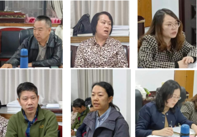 图3 系主任刘爱忠、曾明、丁萍、罗家有、杨丽娜、段燕英就课程思政建设工作进行讨论发言