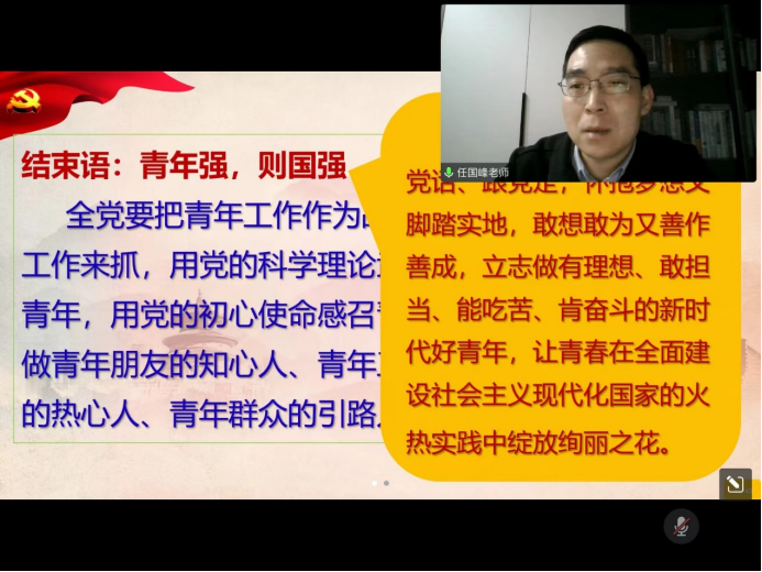 2022年11月22日晚19时,yl6809永利官网集团研究生一支部组织全体党员于公卫楼社会医学系PBL会议室开展学习贯彻党的二十大精神党课教育。党课由支部联系人任国峰副院长以“踔厉奋发新时代,勇毅前行向未来”为主题讲授,支部书记肖铂洋老师主持,参加此次会议的有29名正式党员和7名预备党员。