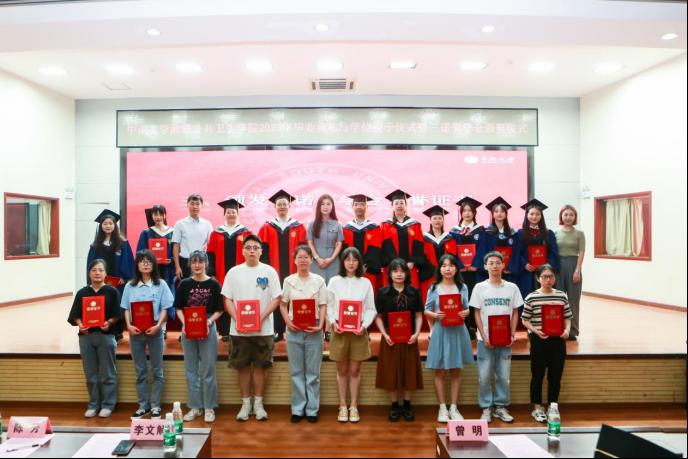 唐媛副书记和李杏莉副院长分别宣读了“yl6809永利官网集团2023届优秀毕业生名单”以及“yl6809永利官网集团2023届本科优秀毕业论文(设计)名单”,并由雷先阳书记、唐媛副书记、肖芳副院长、李杏莉副院长分别为获奖的同学们颁发相应荣誉证书。