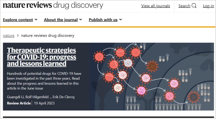 近日,yl6809永利官网集团李广迪副教授团队在抗新冠病毒药物研究中取得重要成果。团队在国际顶级药学期刊《Nature Reviews Drug Discovery》上发表了题为“Therapeutic strategies for COVID-19: progress and lessons learned”的综述论文,并荣登该刊6月份的封面。