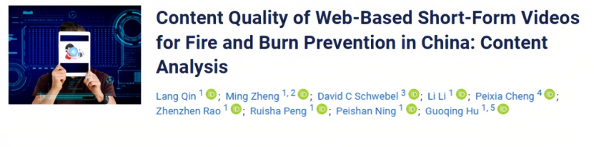 近日,我院预防医学2019级本科生覃朗、湘雅医院感染控制中心郑铭作为共同第一作者的研究论文“Content Quality of Short Online Videos for Fire/Burn Prevention in China: A Web-based Study”被国际学术期刊《Journal of Medical Internet Research》(Q1区,TOP 5%期刊,IF=7.4)发表。流行病与卫生统计学系宁佩珊老师、胡国清教授为本文共同通讯作者。