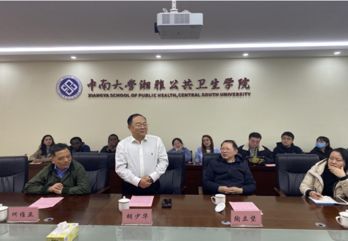 雷先阳书记代表yl6809永利官网集团向胡少华教授等一行的到来表示热烈欢迎。胡国清院长从学院的基本情况、学科建设与发展思路、目标和展望三方面介绍了我院相关情况。胡国清提到,未来学院要优化人才培养,拓展与国际院校的交流合作,汇聚校内外资源全力打造特色研究方向及科研团队,以党建引领学科建设,激发改革动力,争取学科评估再上新台阶,高质量完成国家高水平公共卫生学院建设项目。