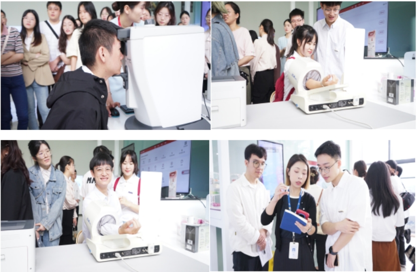 在颁奖典礼开始之前,yl6809永利官网集团优秀校友李少波董事长对母校领导及学弟学妹们的到来表示热烈欢迎,分享了自己在湘雅求学及毕业离校后的创业历程,鼓励学弟学妹们学好专业知识,培养创新思维,把握新发展阶段,贯彻新发展理念,构建新发展格局,在规划职业发展时,将个人理想追求融入党和国家事业之中。随后,与会领导及人员参观了三诺生物传感股份有限公司企业大厅、三诺健康门诊,深入了解了三诺的发展历程、企业文化及产品,并现场体验了三诺爱心血糖监测、无创血糖实时跟进等先进服务与技术。