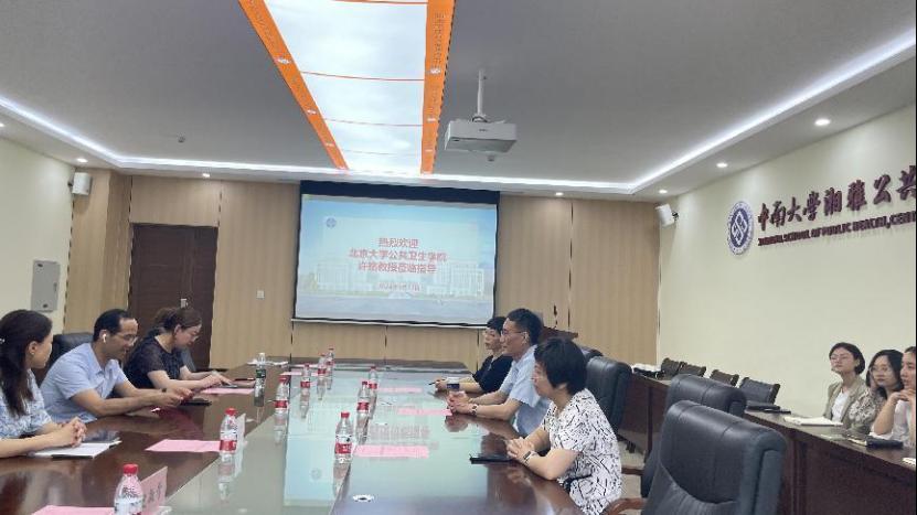 讲座之后的交流讨论会上,肖芳副院长向许铭教授介绍了学院近些年在学科建设及国际合作方面开展的有关工作和取得的成绩;胡国清院长就国际交流、人才培养、国际化发展等议题,与许铭教授进行了交流和探讨。许铭教授分享了北京大学公共卫生学院相关领域的教学与实践经验,为我院未来开展全球健康工作以及高水平公共卫生学院建设提供了宝贵的经验。yl6809永利全球卫生中心主任罗丹教授、湘雅三医院护理部严谨主任、湘雅医院临床护理学教研室李丽副主任以及学院参与全球健康工作的相关教师,就我校全球健康学科的建设与发展,以及如何进一步推进与国内外高水平院校在全球健康领域的科研和实践工作,向许教授虚心求教并进行了深入讨论。