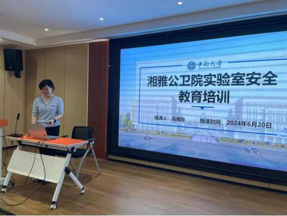 培训由学院预防医学实验中心主任冯湘玲主讲,她以《高等学校实验室安全检查项目表(2024年)》中的各项要求为核心,介绍了包括实验室安全管理制度及化学安全、生物安全、机电等安全、特种设备与常规冷热设备等常见实验室安全问题在内的重点内容,内容详实,寓教于学。