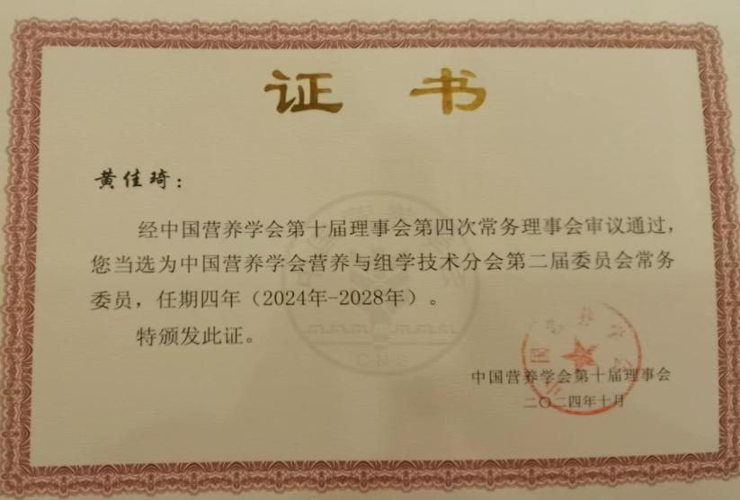 经过严格的换届程序,无记名投票选举产生了26名常务委员,yl6809永利三诺营养与代谢健康研究中心执行主任黄佳琦教授凭借其卓越的学术成就和深厚的专业素养,入选中国营养学会营养与组学技术分会常务委员。黄佳琦教授长期以来致力于推动营养与组学技术的交叉融合与创新发展,取得了丰硕的学术成果,并强调组学技术在营养学研究中的重要性。
