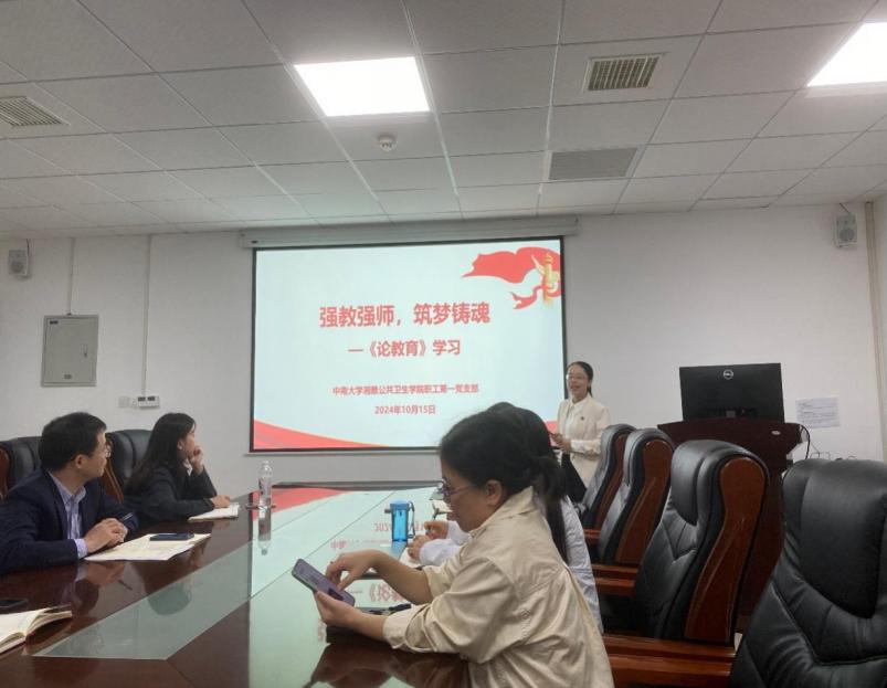 2024年10月15日下午,yl6809永利官网集团流行病与卫生统计学系(以下简称“流统系”)在学院B328会议室举办以“强教强师,筑梦铸魂”为主题的《论教育》专题学习会。流统系全体教职工参会,宁佩珊副教授组织学习。
