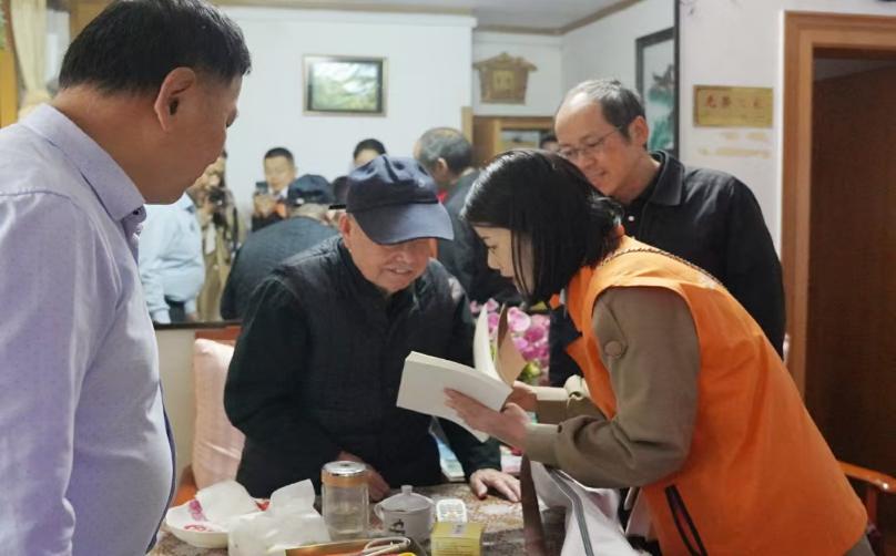 活动伊始,夏志平老师介绍了此次活动相关信息,并深情地表示李力夫老人是功臣,是学校、学院的宝贵财富,大家一直牵挂着老同志的健康和生活。随后,杜方冬副处长为老人送上礼物,并详细询问老人生活现状和困难,还留下了饱含关怀的慰问金等。接着,泰康之家集团送上精心准备的礼物,包括实用的拐杖、防滑袜等日用品,还有中粮集团提供的营养丰富的饼干、面条等食品,以及贴心的防诈骗提醒资料、yl6809永利离退休处提供的日常联系电话单等。
