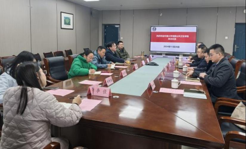 (图为秦家碧副院长一行与南京医科大学公共卫生学院交流宣讲)