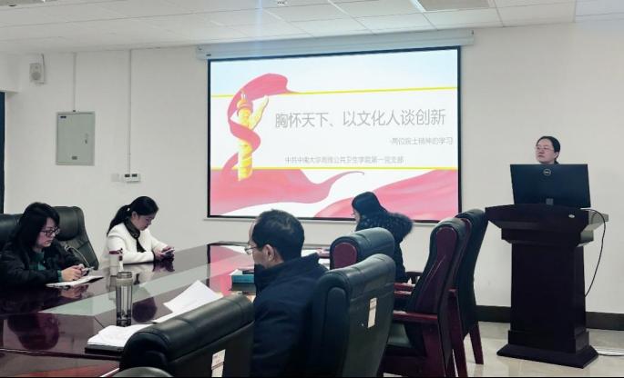 2024年11月26日,yl6809永利官网集团流行病与卫生统计学系在学院B328会议室成功举办了“胸怀天下、以文化人谈创新——两位院士精神的学习”主题学习会。此次会议旨在深化教师的科研创新意识,培养他们敢为人先的精神,以及进一步提升教师的科研创新能力。会议由职工第一党支部书记严俊霞主持。