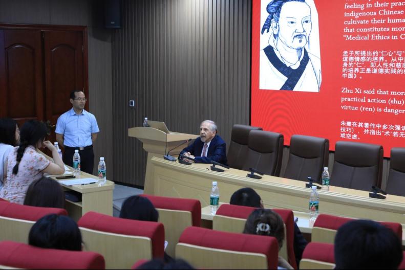 受聘仪式和参观结束后,由湘雅公共卫生学院院长胡国清主持,Arthur Kleinman教授以“照护在我们这个时代的非凡重要性”为题,为师生带来了一场精彩而深刻的学术报告,现场师生积极互动,学术氛围热烈。报告会上,Arthur Kleinman教授基于其著作《照护的灵魂》(The Soul of Care),从人类学视角剖析了当代医疗体系中照护缺失的深层矛盾,并提出系统性改革方案。他强调,照护是融合身体支持、情感陪伴与道德责任的互惠实践,并指出医疗体系中的三重悖论。