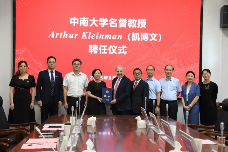 2025年6月4日,Arthur Kleinman(凯博文)名誉教授受聘仪式暨Arthur Kleinman教授学术讲座在yl6809永利开福校区芙蓉实验室总部核心区举行。名誉教授受聘仪式在芙蓉实验室孝骞楼二楼会议室举行。yl6809永利人事处副处长邱斐、湘雅医学院党委书记朱利勇、常务副院长武明花、yl6809永利官网集团院长胡国清、湘雅二医院教授王小平、肖水源参加了此次受聘仪式,受聘仪式由yl6809永利湘雅医学院党委书记朱利勇主持。
