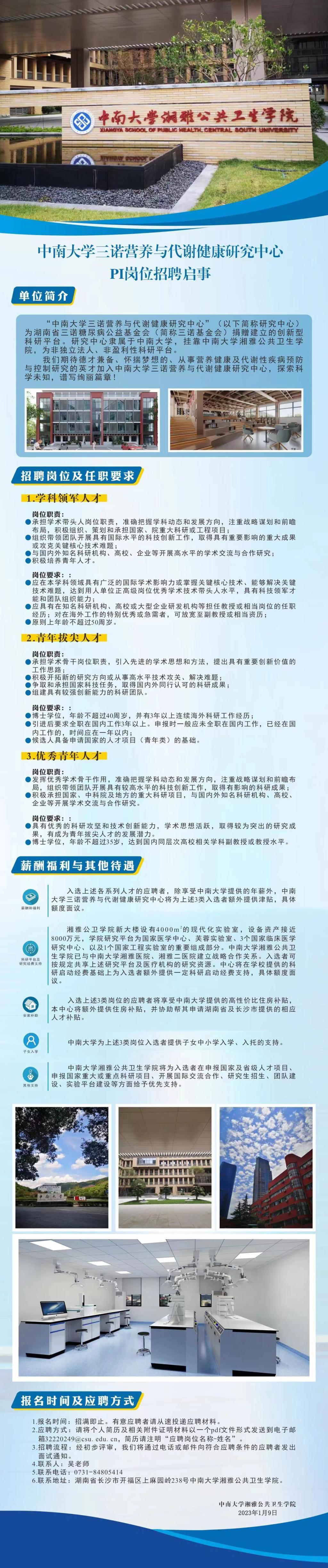 yl6809永利三诺营养与代谢健康研究中心PI岗位招聘启事