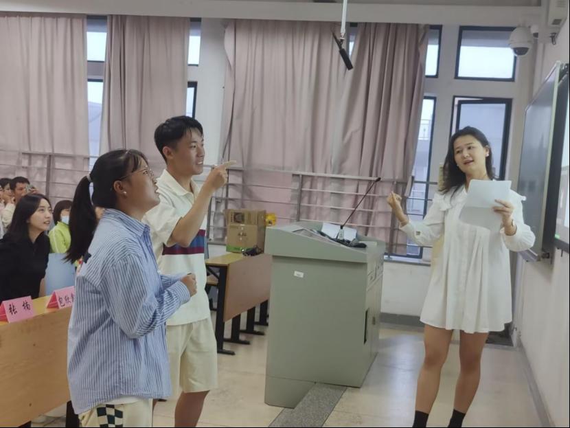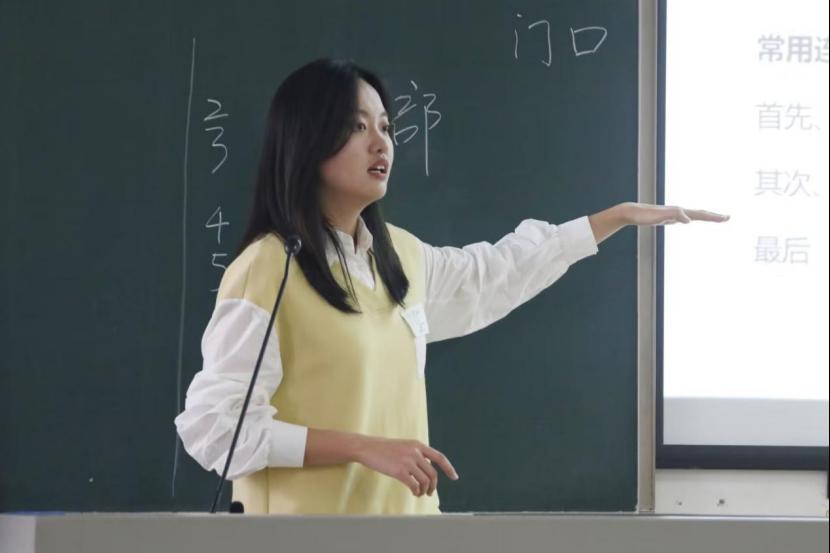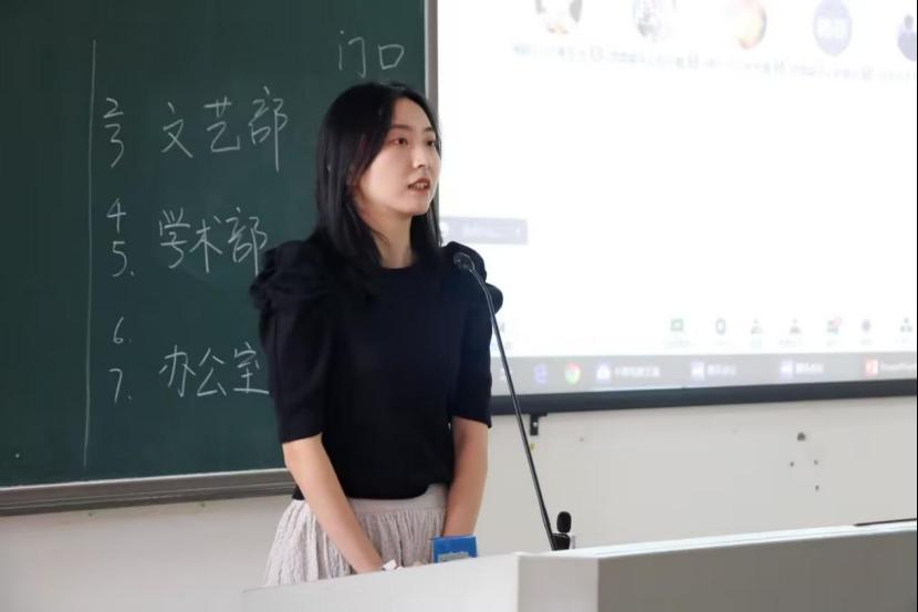 (图为学术部部长雷若妍同学讲解)