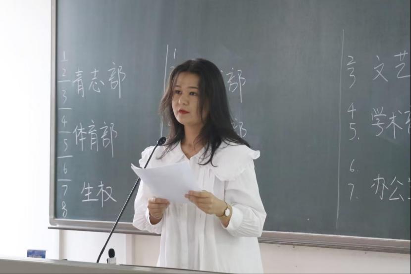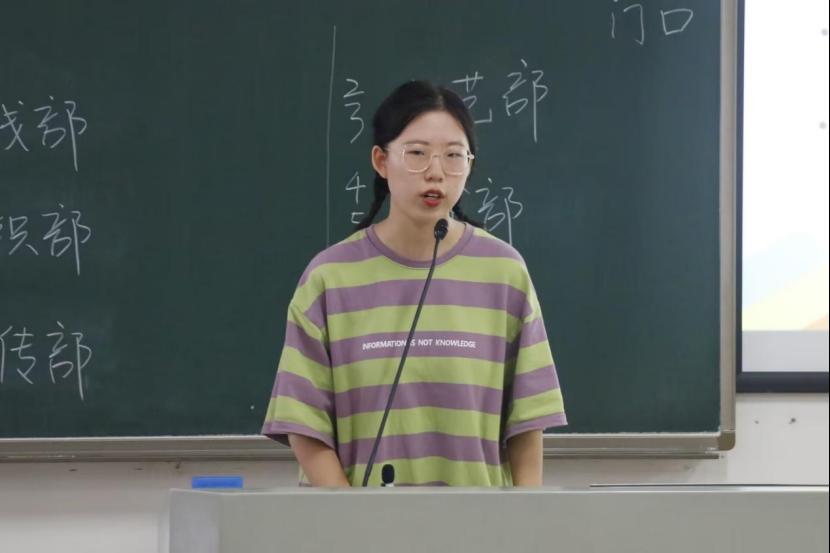 会议伊始,由院团委书记王佩文老师发言总结过去一个多月的工作并对会议内容及目标进行介绍。王佩文老师以温和亲切的语气拉近了与同学们的距离,让22级的“新鲜血液”感受到了团委及学生会这个大家庭的温暖,对会议内容产生了极大的兴趣。之后由团委副书记俞晓菲、包欣鑫、执行主席蒋志豪、张楠依次发言,进行了自我介绍并表达了对新干事的欢迎、关怀与期待。