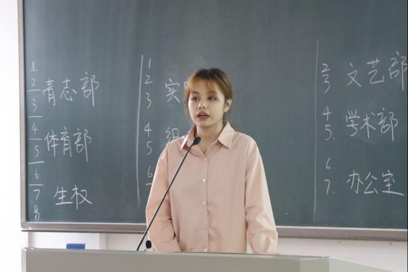 (图为青志部副部长木尼热同学主持会议)