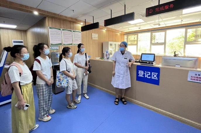 (图为实践团成员在参观学习新冠疫苗接种流程)