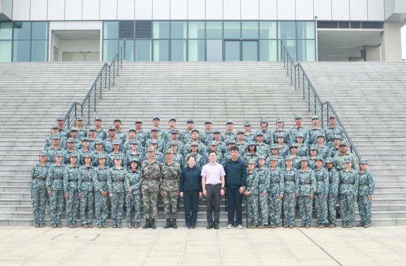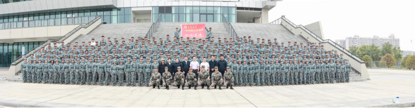 (图为学院领导老师与教官、学生合影留念)