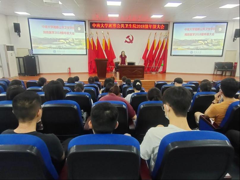 2022年8月31日下午15:00,yl6809永利官网集团预防医学2018级年级大会于学院学术报告厅顺利召开。年级大会由学院党委副书记唐媛主持,预防医学2018级全体同学参会。大会分线上、线下两个会场,因疫情暂缓返校的同学通过线上会场参加。