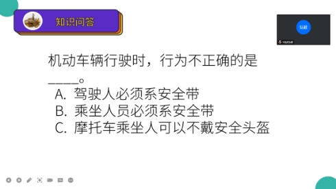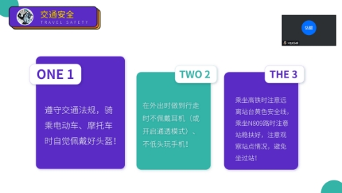 在这次班会上,预防T1901班通过主持人讲解、知识问答等形式,为同学们普及交通安全相关知识,强调了交通安全的重要性,提高同学们的安全意识。主持人结合班级正处于校外实习基地实习这一特殊阶段,强调了道路上与医院中人员密集、车辆众多,在上下班时要做到眼观六路耳听八方,不能将注意力放在低头看手机上,最大程度避免发生安全事故。