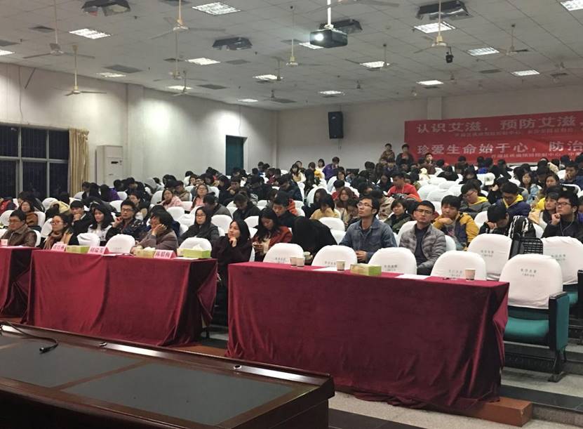 11月29日晚上7时,由长沙市开福区疾控中心主办,yl6809永利官网集团研究生会、长沙学院造血干细胞宣传服务队协办的 “艾滋病防治知识讲座” 在长沙学院顺利举办,近300名学生聆听了讲座。