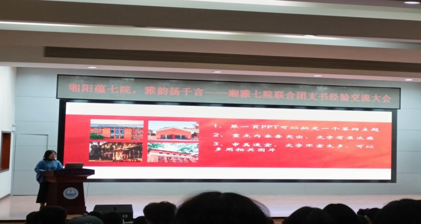在湘雅医学院院歌声中,本次“湘阳蕴七院,雅韵扬千言”——湘雅七院联合团支书交流大会正式开始。