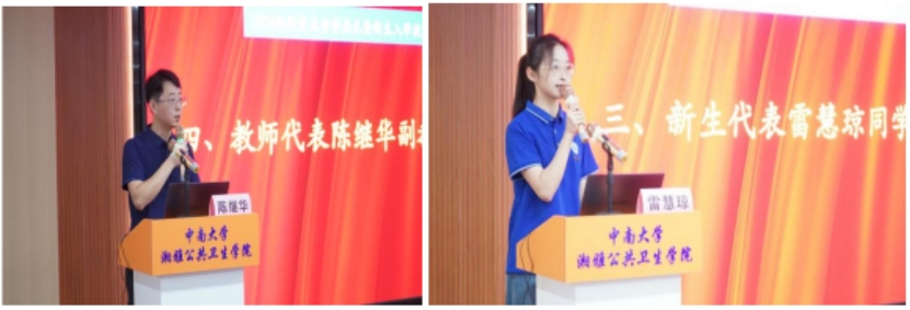 随后,2024级新生代表雷慧琼同学和导师代表陈继华副教授发言。雷慧琼在发言中表达了对湘雅的深厚情感和崇敬之心,分享了自己在支教及追逐学术梦想中的收获与感悟,并号召同学们在接下来的研究生生涯中秉持“求知若渴、勇于实践”的精神,共同奋斗,不负青春时光。