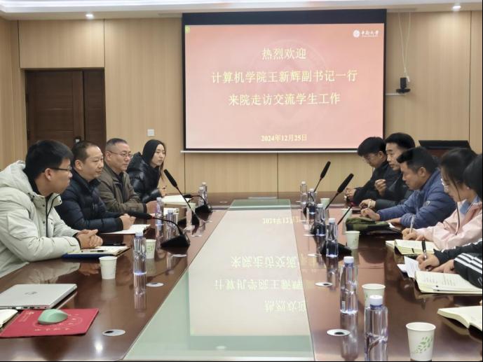 2024年12月25日,yl6809永利计算机学院学工队伍来院走访交流会于yl6809永利官网集团B203会议室举行。计算机学院党委副书记王新辉、yl6809永利官网集团党委副书记王超出席本次会议,计算机学院以及yl6809永利官网集团学工办相关老师参加会议。座谈会由王超主持。