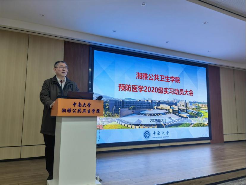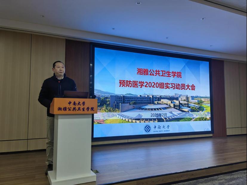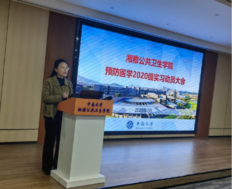 李杏莉副院长强调了专业实习的重要性,通过总结往届实习经历,鼓励同学们珍惜实习机会,灵活处理问题,勇敢面对挑战,为未来的职业发展打下坚实的基础。同时,她还要求同学们能认识到实习期间自身的双重角色,既要端正态度、尊敬师长、练就过硬本领,又要遵守纪律、注重安全、坚决服从管理。李院长期望同学们能在实习过程中不断学习、不断进步,以最好的状态展现湘雅公卫人的精神风貌与责任担当。