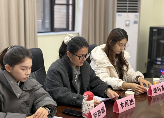 随后,三位学生代表依次发言。2024本科生阿茹娜·哈肖别克同学分享了入学以来的学习生活融入体会;2022本科生楚阿克·斯兰别克同学讲述了参与校园文化活动的收获与感悟;2021本科生木尼热·木沙同学则从高年级学生的角度,交流了专业学习与实践锻炼的经验